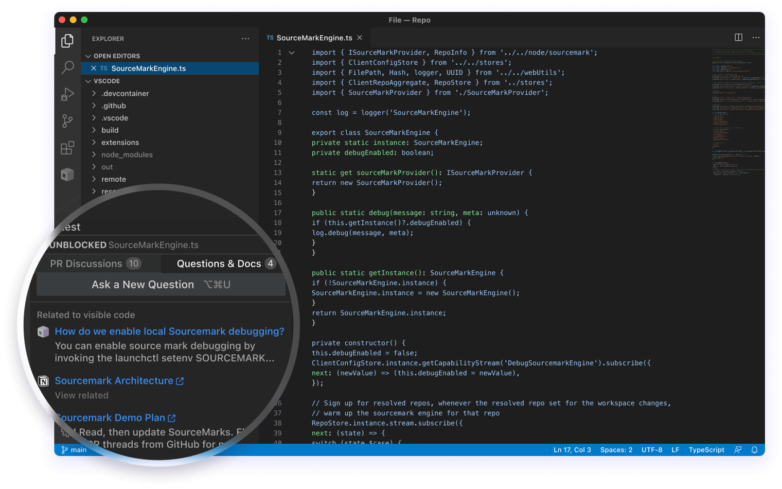 For example, if you’re using the Unblocked IDE extensions, you will see prior (public) questions in the insights panel for the file you have open, along with other relevant context from other connected data sources.