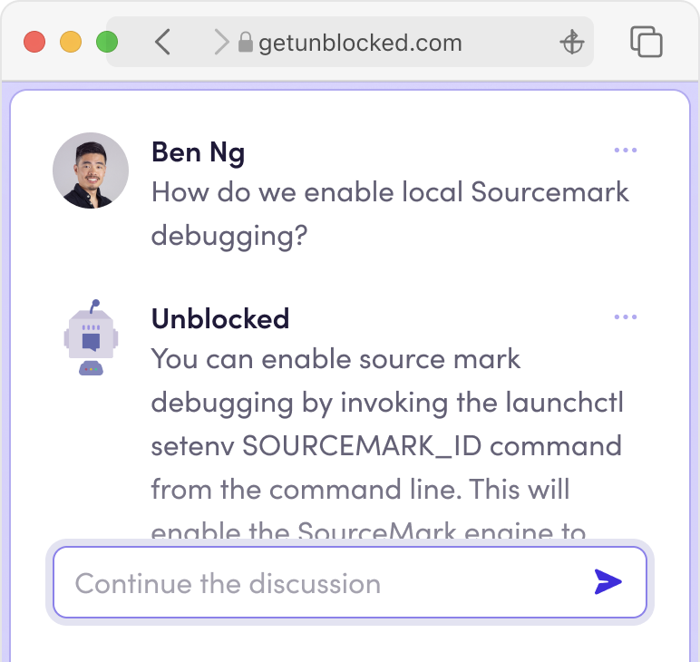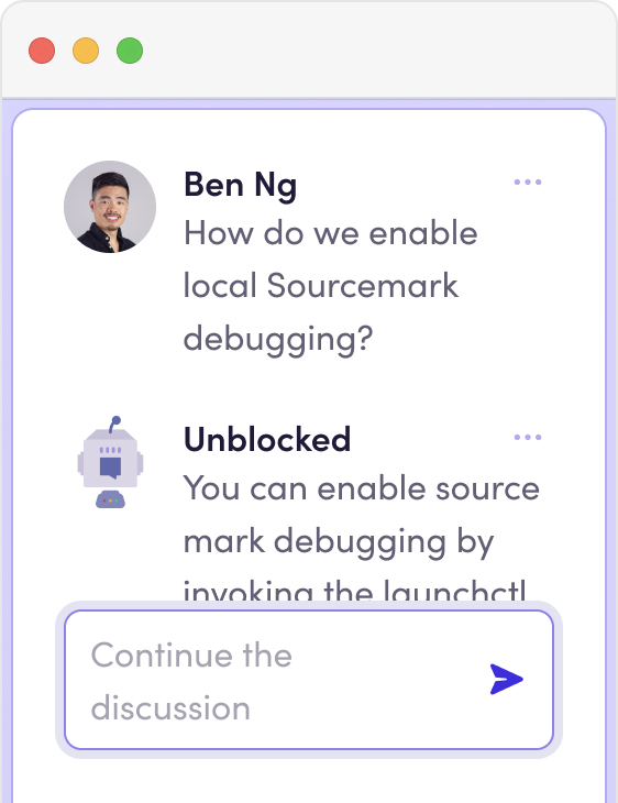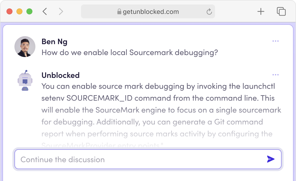 Unblocked answers questions using the context from your code, docs, and conversations.